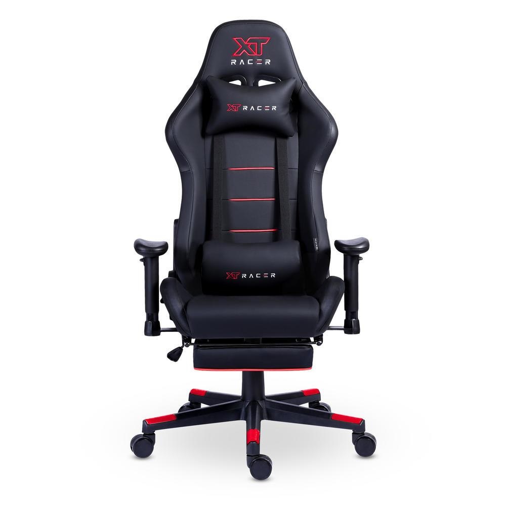 Cadeira Gamer XT Racer Attack Com Apoio De Pés Reclinável Ergonômica Couro Sintético - Preto e Vermelho